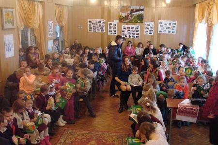В рамках благодійного проекту “Повстанська абетка від Святого Миколая”. Віталій Цимбалюк і Олег Вітвітцький відвідали 2 школи-інтернати. Приємно здивувала реакція діток на Алярмика, – побачивши юного вояка у формі – у них загорялись очі. Загалом, протягом двох днів роздано пів тисячі абеток